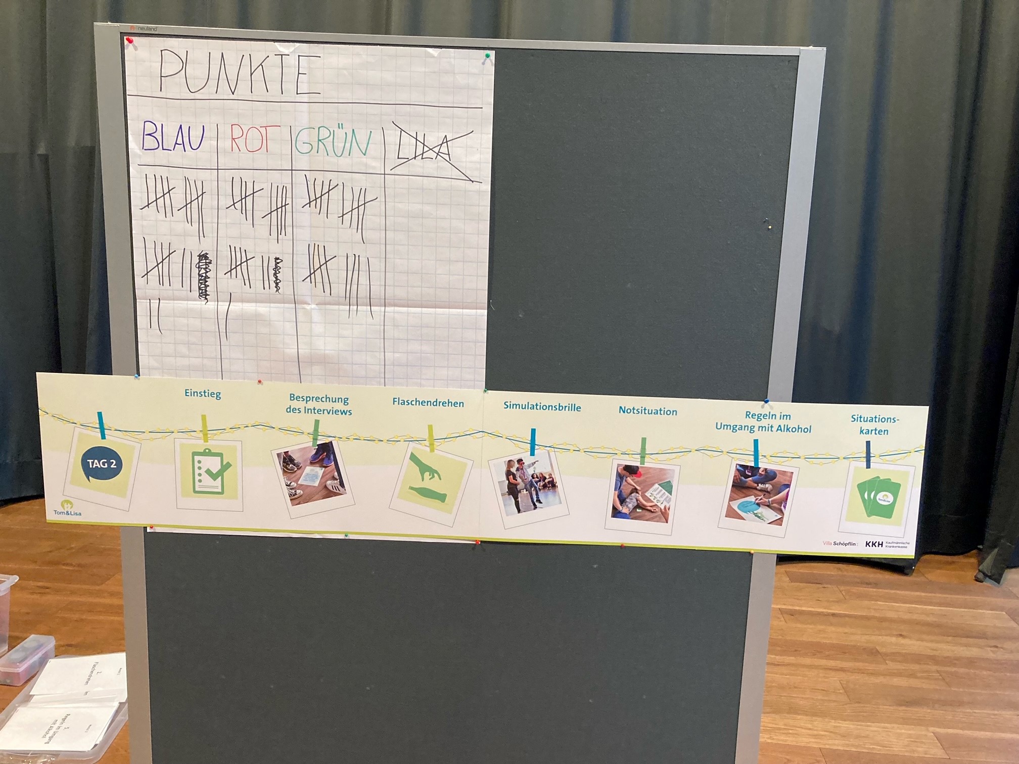 Die 7a war am 11.04.2024 in Lörrach zu Besuch bei der Villa Schöpflin. Wir haben dort bei dem Alkohol-Prävensionsworkshop Tom & Lisa teilgenommen. Wir wurden nett empfangen. Im Workshop ging es um Tom & Lisa, Tom und Lisa werden 14 Jahre alt und entschließen sich gemeinsam mit den Schülerinnen und Schülern die anstehende Geburtstagsparty zu planen. Als Geburtstagsgäste erfahren die Jugendlichen was zu einer guten Party dazugehört, wie ein verantwortungsvoller Umgang mit Alkohol aussieht und wie in Gefahrensituationen richtig reagiert werden kann. Als erstes wurden wir gefragt welche fünf Suchtprodukte wir kennen. Zum Beispiel: Cannabis, Alkohol, Tabak, Glücksspiele und Medien. Danach wurden wir in drei verschiedene Gruppen eingeteilt. Als Gruppe mussten wir zusammen überlegen und verschiedene Angaben machen ab welchem Alter man welchen Alkohol kaufen darf. Für jede richtige Antwort bekam man als Gruppe einen Punkt. Dann wurden wir darüber aufgeklärt was weicher und harter Alkohol ist: weicher Alkohol wird gegärt harter wird destilliert. Wir wurden als Gruppe gefragt was für Vor- und Nachteile es bei einer Party ohne Alkohol gibt für jedes sollten wir drei Gründe nennen. Zum Beispiel: sicherer Heimweg oder dass es weniger Spaß gibt. Danach sollten wir Möglichkeiten nennen wie man auch ohne Alkohol Spaß haben kann. Das war der erste Tag. Am zweiten haben wir als erstes Flaschendrehen gespielt. Wir durften eine Alkoholbrille anziehen und mussten damit dann einen kleinen Slalom laufen. Dann gab es eine kleine Pause. Danach haben wir eine Notsituation geübt. Wir sollten eine Person aus unserem Team in die stabile Seitenlage bringen. Wir wurden dann bewertet und dann gab es für jede richtige nach gemachte Sache ein Punkt. Dann gab es die Siegerehrung und das Gewinner Team seine Überraschung.